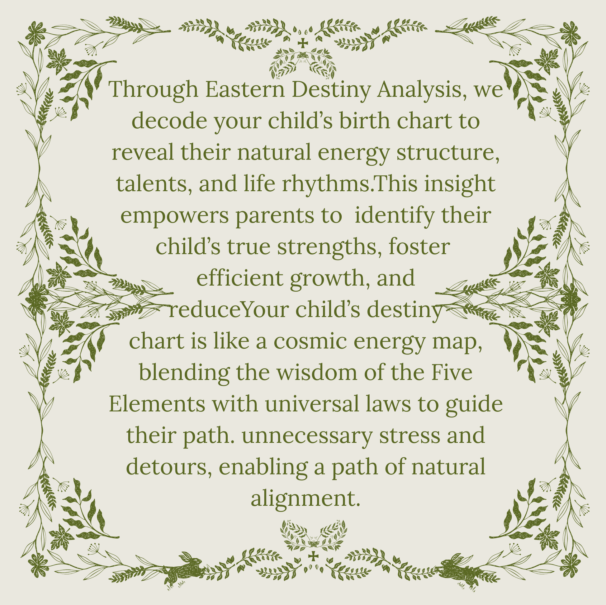 At the exact moment of birth, every child carries a unique energy blueprint that reflects their natural strengths, personality traits, and life path. This blueprint is formed by the interplay of the Five Elements (Wood, Fire, Earth, Metal, Water) and cosmic energy, creating a map that is truly one of a kind.