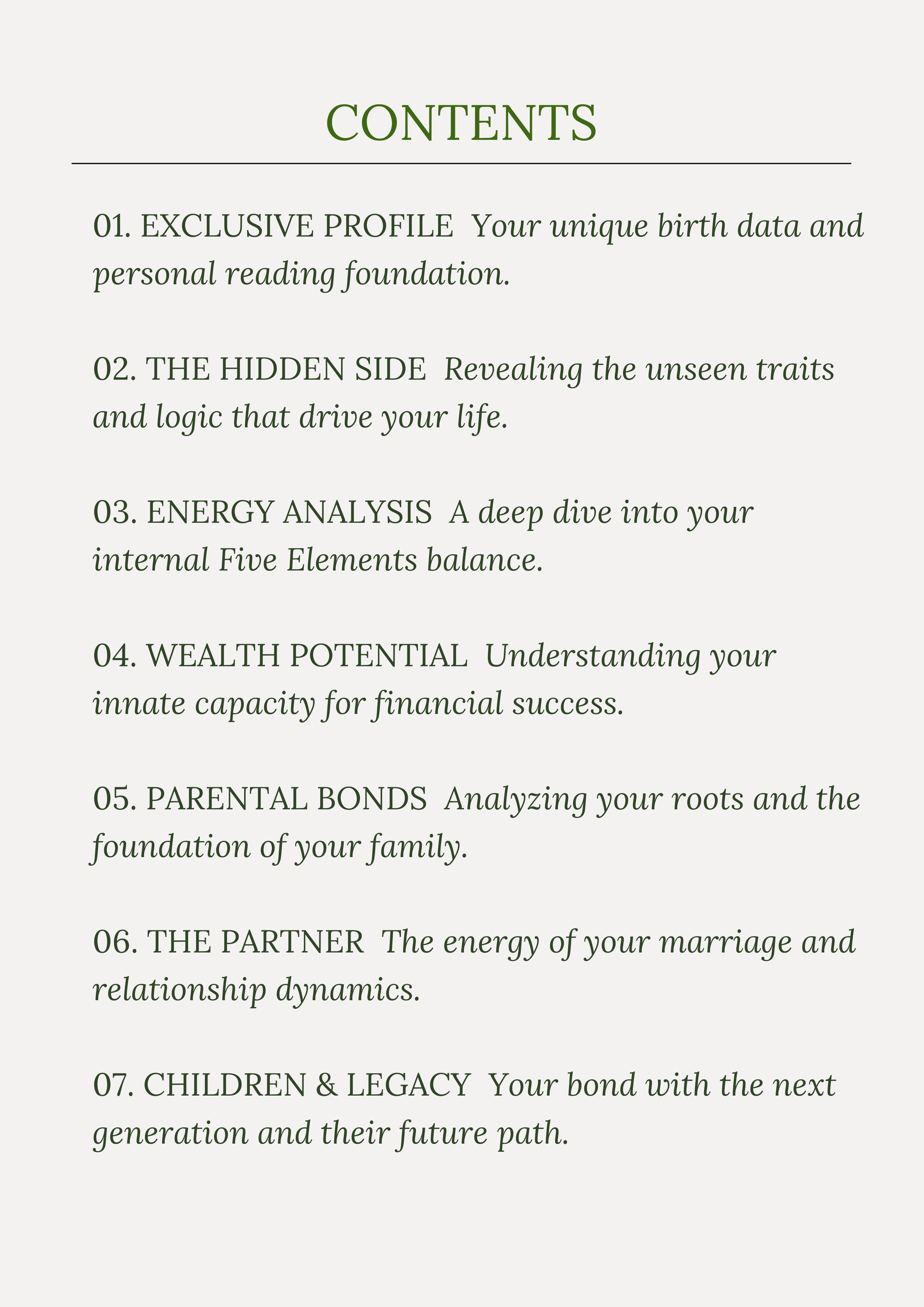 - Professional Strategic Insight (Deep Level): An 8–15 page PDF, delivered within 5–7 Business Days. This level involves complex data modeling to decode systemic career and wealth pathways through intensive manual calculation.