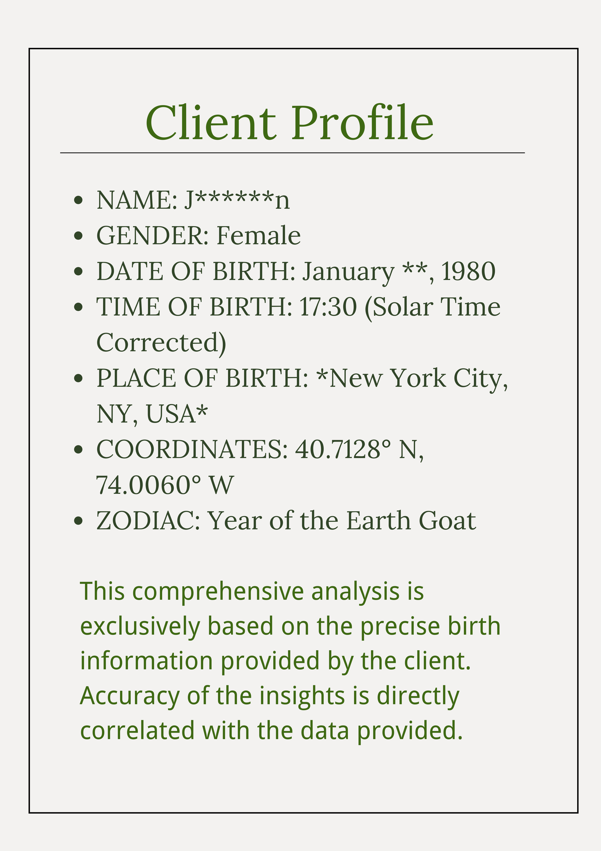 Precision is Key: For our "Ultimate Strategic Alignment" series, your birth hour, minute, and location are essential coordinates. To ensure the highest level of accuracy for your Master-level report, please guarantee the data provided is correct.