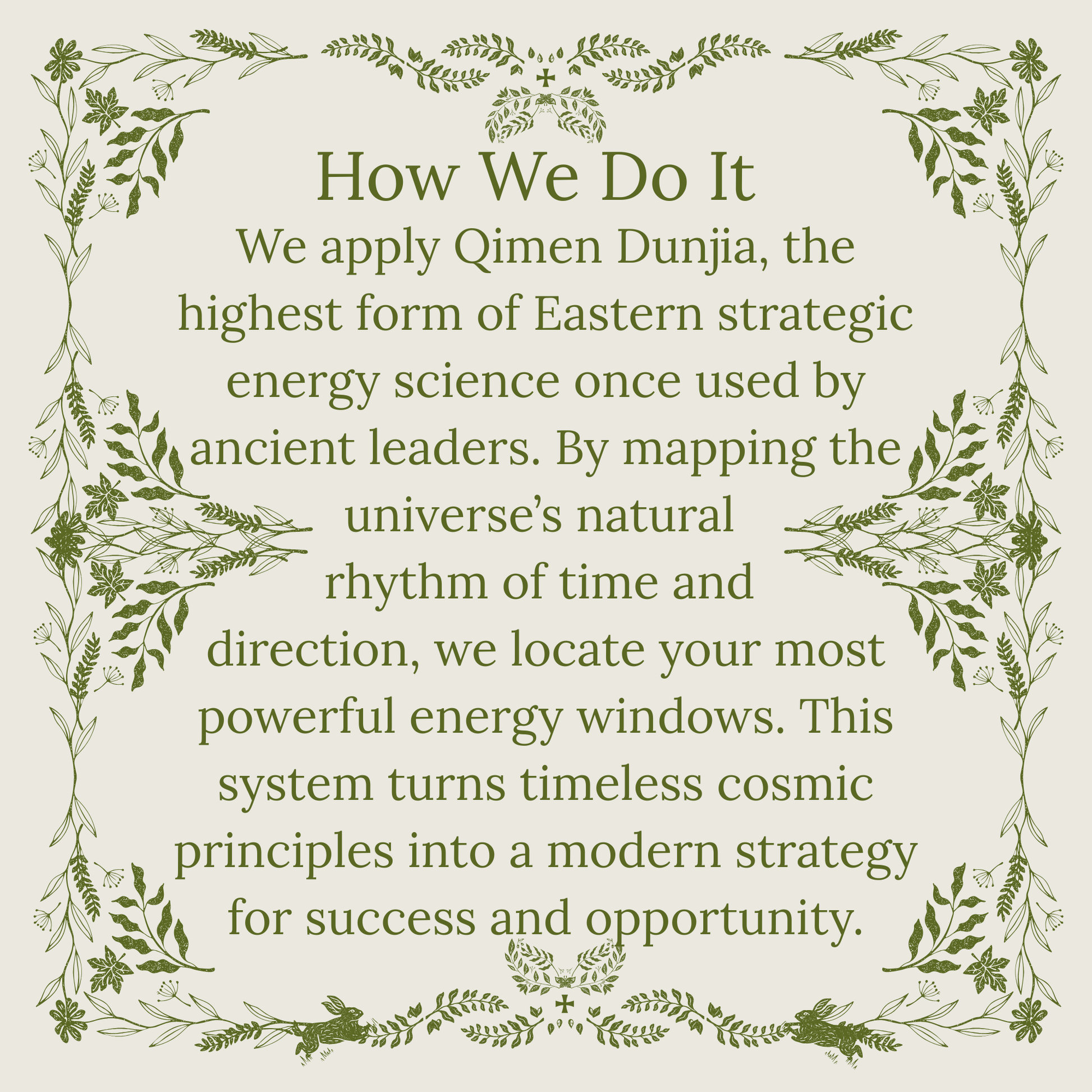 The Prosperity Timing Guidance focuses on the Growth Gate Energy within the ancient Qi Men Dun Jia system—an energy portal symbolizing prosperity, opportunity, and expansion.
