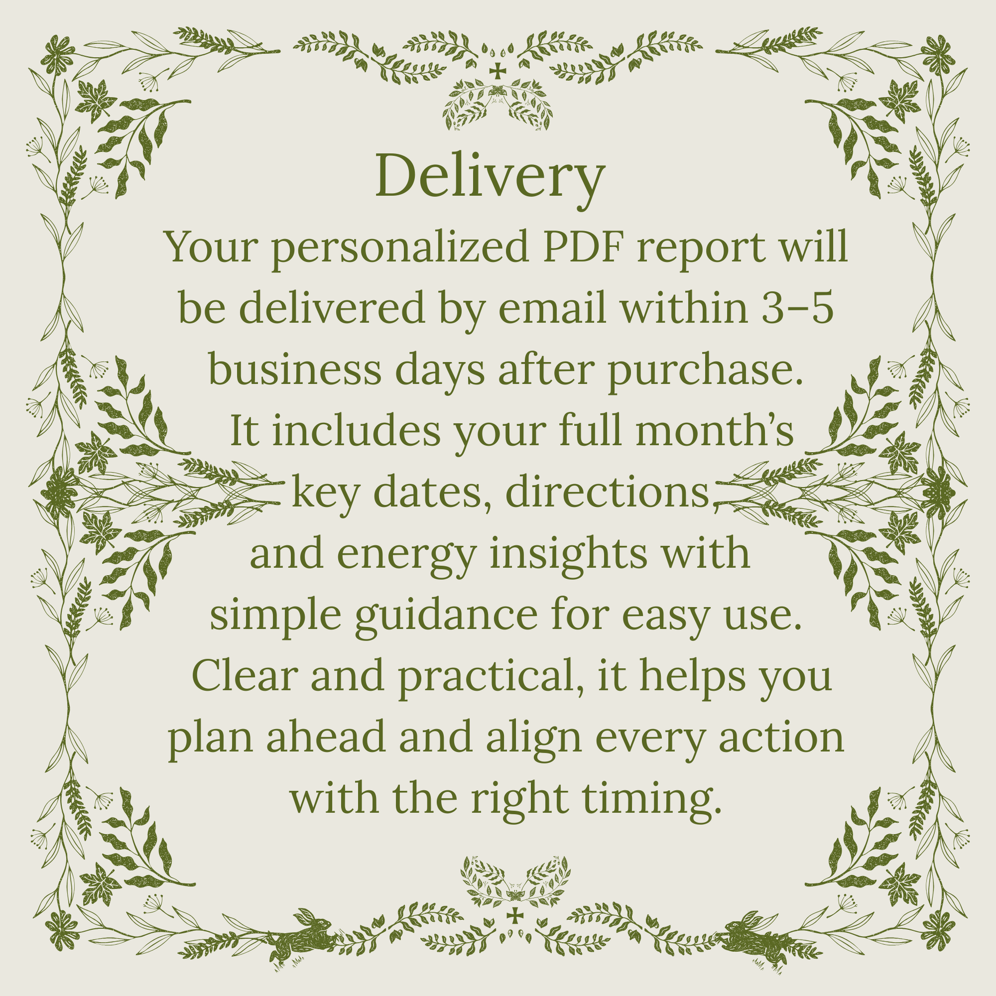 Report Content: Includes all monthly energy windows, key dates, optimal directions, and action recommendations.